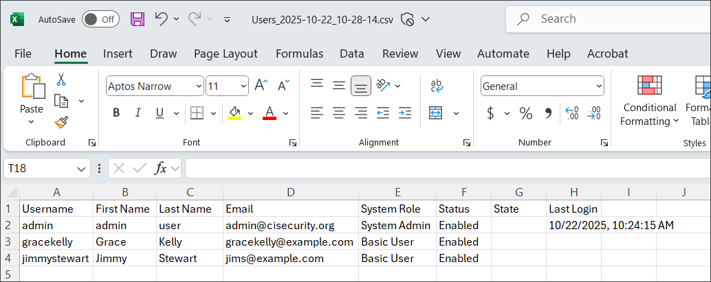 The exported user list will look something like this: