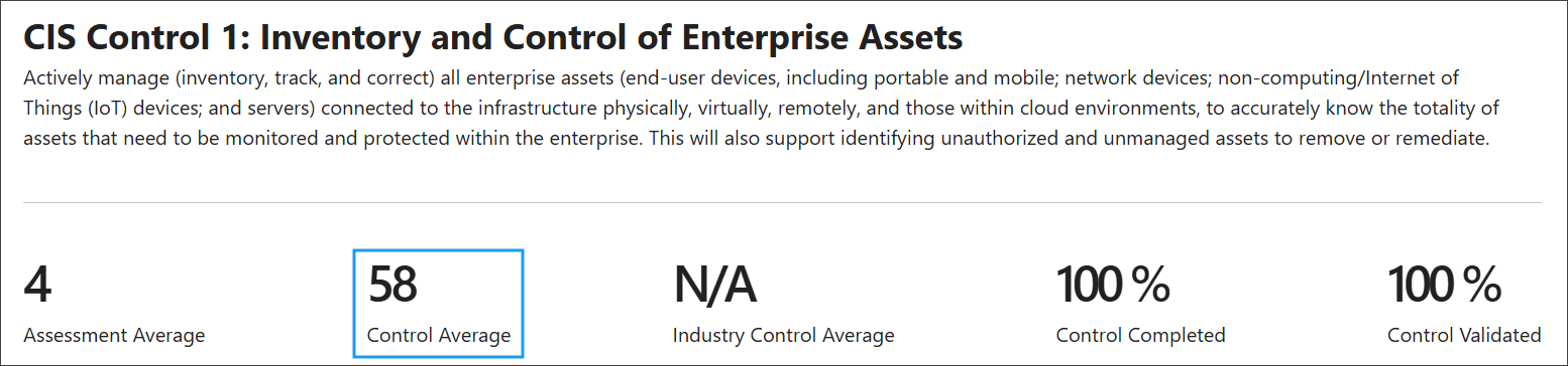 To calculate the Control Average, add all the percentage scores of its applicable and validated Safeguards and divide that sum by the number of its applicable and validated Safeguards: